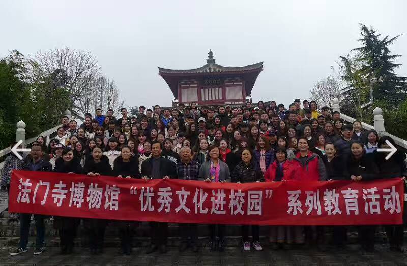 3月14日, 2014级历史专业蒙汉班、考古与博物馆专业130名学生,在4名教师的组织下来到法门寺博物馆开展教学实践活动。同学们在宣教部讲解员的带领下,参观了法门寺历史文化展厅、佛文化展厅和大唐珍宝展厅。