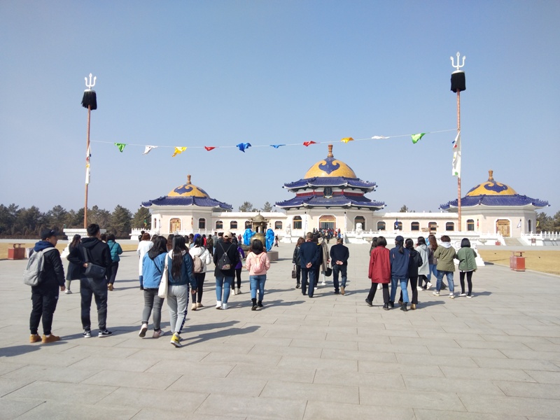 2019年3月9日中午,见习同学来到位于内蒙古自治区鄂尔多斯市伊金霍洛旗的成吉思汗陵参观,同学们在参观过程中认真听讲解员讲解,不时询问问题,并作记录。参观结束后同学们将赶赴下一个目的地陕西省延安市。