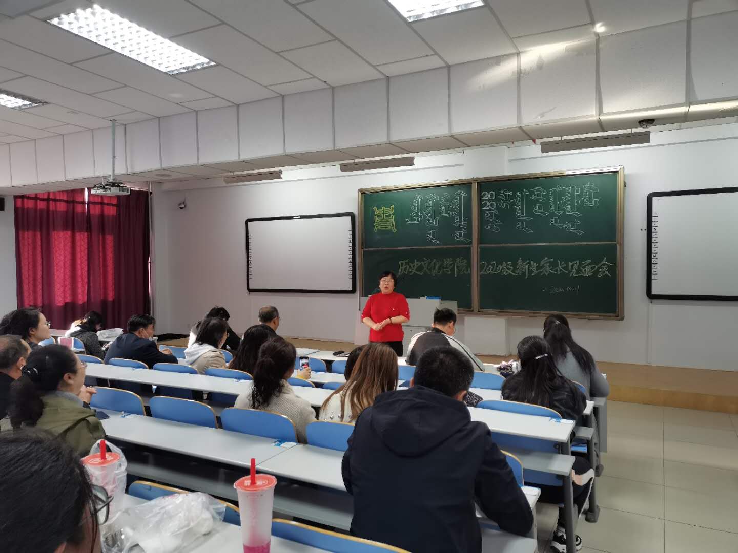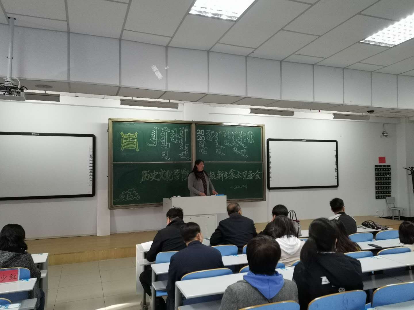 为了让2020级新生和家长更好地了解学校和学院,适应大学生活,增强家校联动,2020年10月11日下午2:30,pg游戏电子模拟器在行知楼105召开了2020级新生家长见面会。pg游戏电子模拟器党委书记张升、院长李艳洁、党委副书记兼副院长宋磊、团总支书记钱艳艳、学工办副主任潘梅花、2020级历史学蒙语授课一班班主任哈斯格日勒、2020级历史学蒙语授课二班班主任包梅花、2020级历史学汉语授课一班班主任冯科、2020级历史学汉语授课二班班主任王功、2020级考古文博班班主任齐溶青及部分新生学生和家长代表50余人参加会议。会议由学工办副主任潘梅花主持。