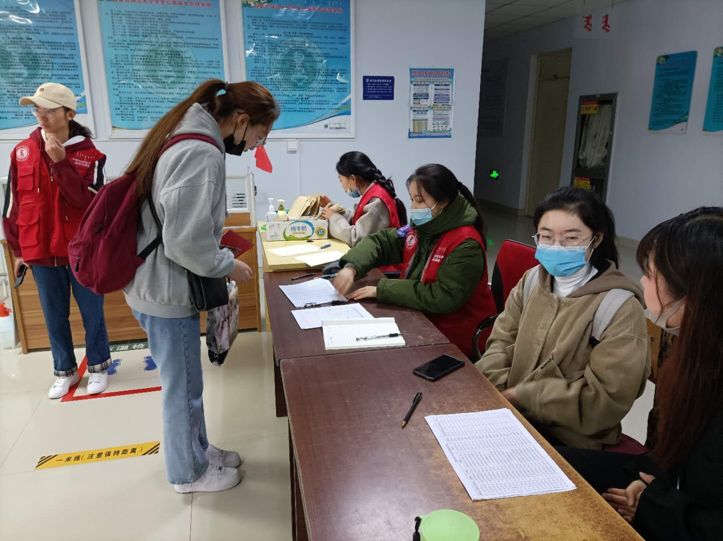 学院严格按照疫情防控要求,测量体温,楼宇进出登记,各道程序一丝不苟,保障新生报到工作平稳有序。