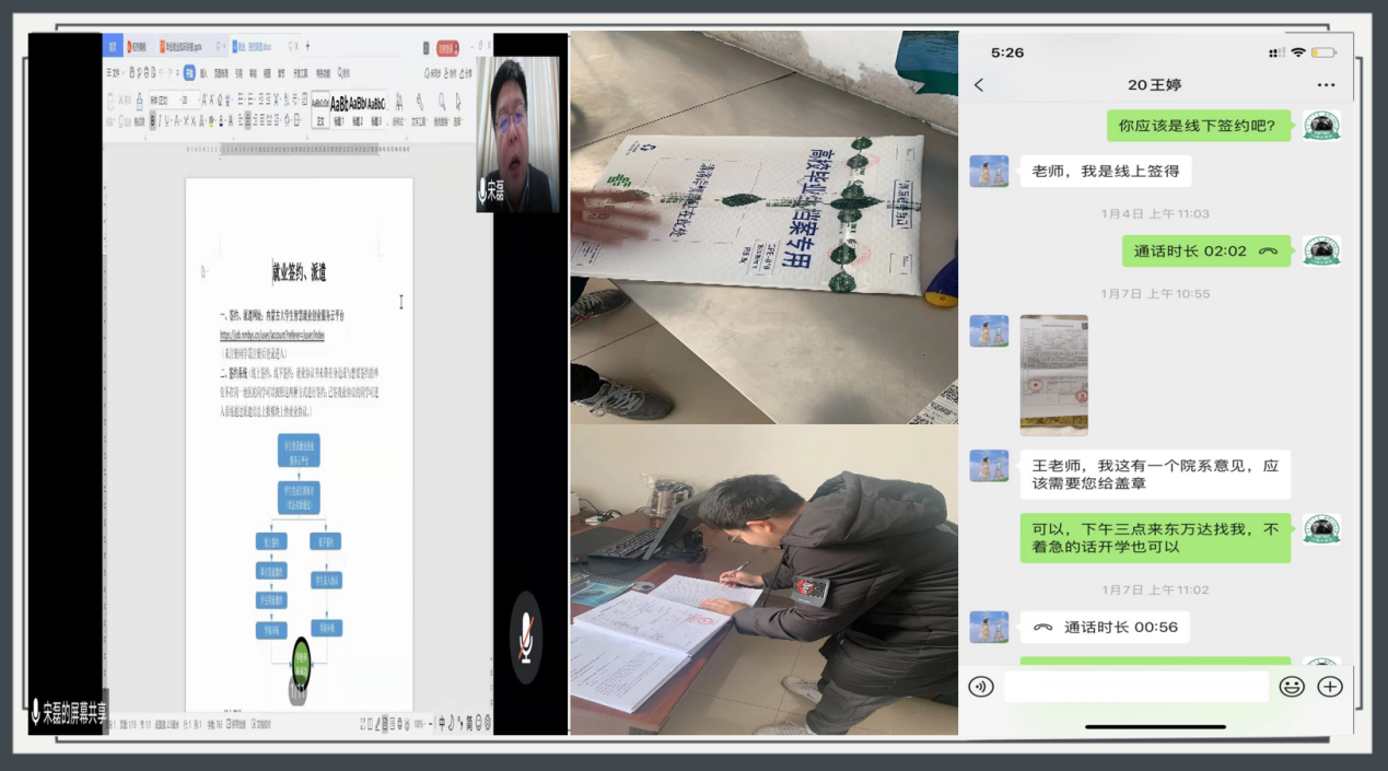 本着“服务学生”的理念,进一步简化就业手续办理流程,实施学生派遣证和档案等就业材料“线上申请、线上审核、辅导员专人邮寄”一站式服务,实现毕业生不出门、不见面也能顺利办理就业手续;通过邮箱、微信互动等方式向毕业生提供24小时线上答疑服务,确保紧急事务“一事一办”、“一人一办”、“特事特办”,精细对接,为毕业生解决签约、入职等相关手续的后顾之忧。截至目前,已通过网络、微信、电话等咨询就业政策、就业手续办理等问题200余人次,已为170余人次办理就业协议书盖章、求职材料盖章、就业推荐表和三方协议邮寄、《就业报到证》变更等手续。