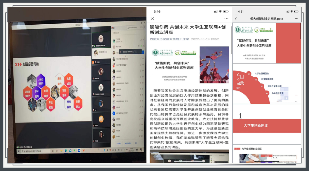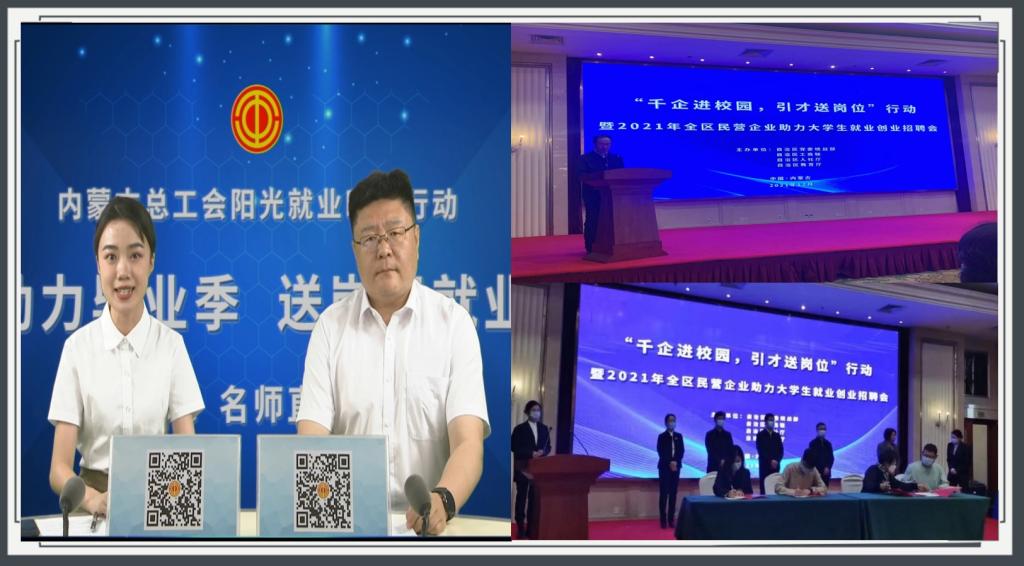 院积极参与名师直播带岗活动,2021年底参加自治区党委统战部、自治区工商联、自治区人社厅、自治区教育厅联合主办的“千企进校园、引才送岗位”大学生就业创业招聘会启动仪式,并积极与内蒙古大学生创业联合会签订合作意向,学院主动与内蒙古大学生创业联合会以及企业公司联系对接。2022年3月与内蒙古大学生创业联合会合作成功举办线上专场招聘会。