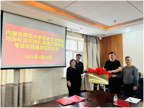 姜鑫局长首先代表扎赉诺尔文体旅游广电局对pg游戏电子模拟器的各位领导与老师表示欢迎和感谢,其次介绍了扎赉诺尔区的历史与文化以及目前扎赉诺尔区文体旅游广电局在文旅产业与历史文化研究方面取得的进展与成效,最后阐述了今后扎赉诺尔文旅系统工作开展的想法与计划。扎赉诺尔博物馆馆长孙祖栋介绍了扎赉诺尔博物馆在专业领域、发展方向、基地建设等方面的工作情况。随后,双方就共建专业实践基地进行了签约、揭牌仪式。