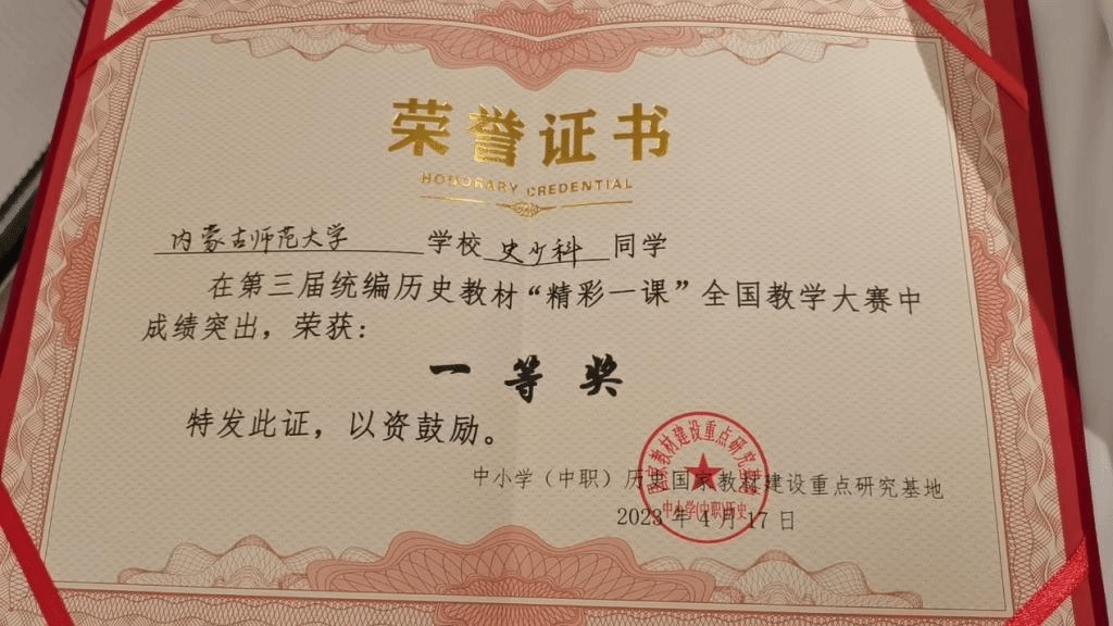 4月15日至17日,第三届统编历史教材“精彩一课”全国教学大赛暨历史教材研究高端论坛在福建师范大学举行,来自北京师范大学、华东师范大学、华中师范大学、东北师范大学、陕西师范大学、华南师范大学等部属、省属重点大学的125名同学参赛。经过激烈角逐,pg游戏历史学专业史少科同学荣获一等奖,牧仁老师和袁丽丽老师荣获“优秀指导教师”称号。