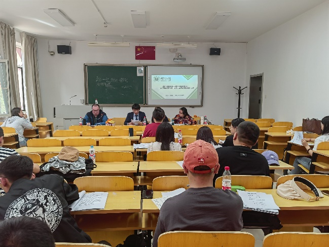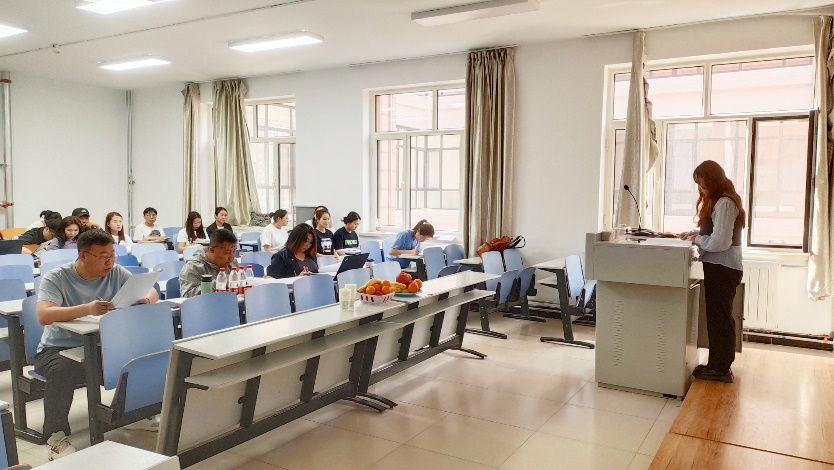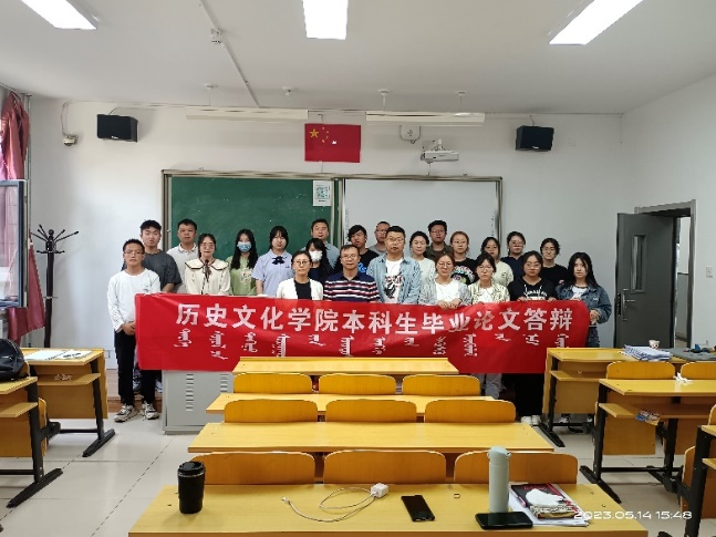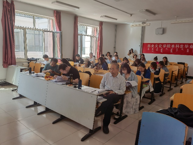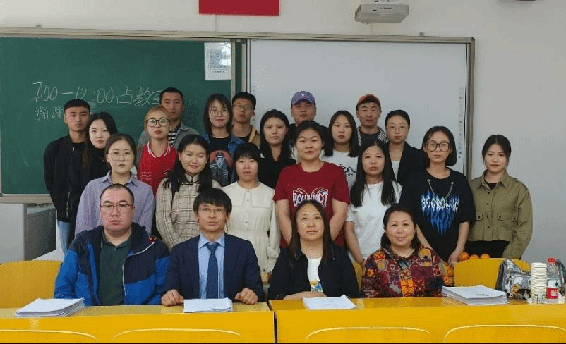 第八组于行知楼218教室进行答辩,答辩评委组长是齐英老师,参与的老师还有包梅花、哈斯格日勒、朝鲁门。