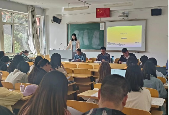 第四组于行知楼214教室进行答辩,答辩评委组长是李艳洁老师,参与的老师还有王洁、李晓明、邓闳旸。