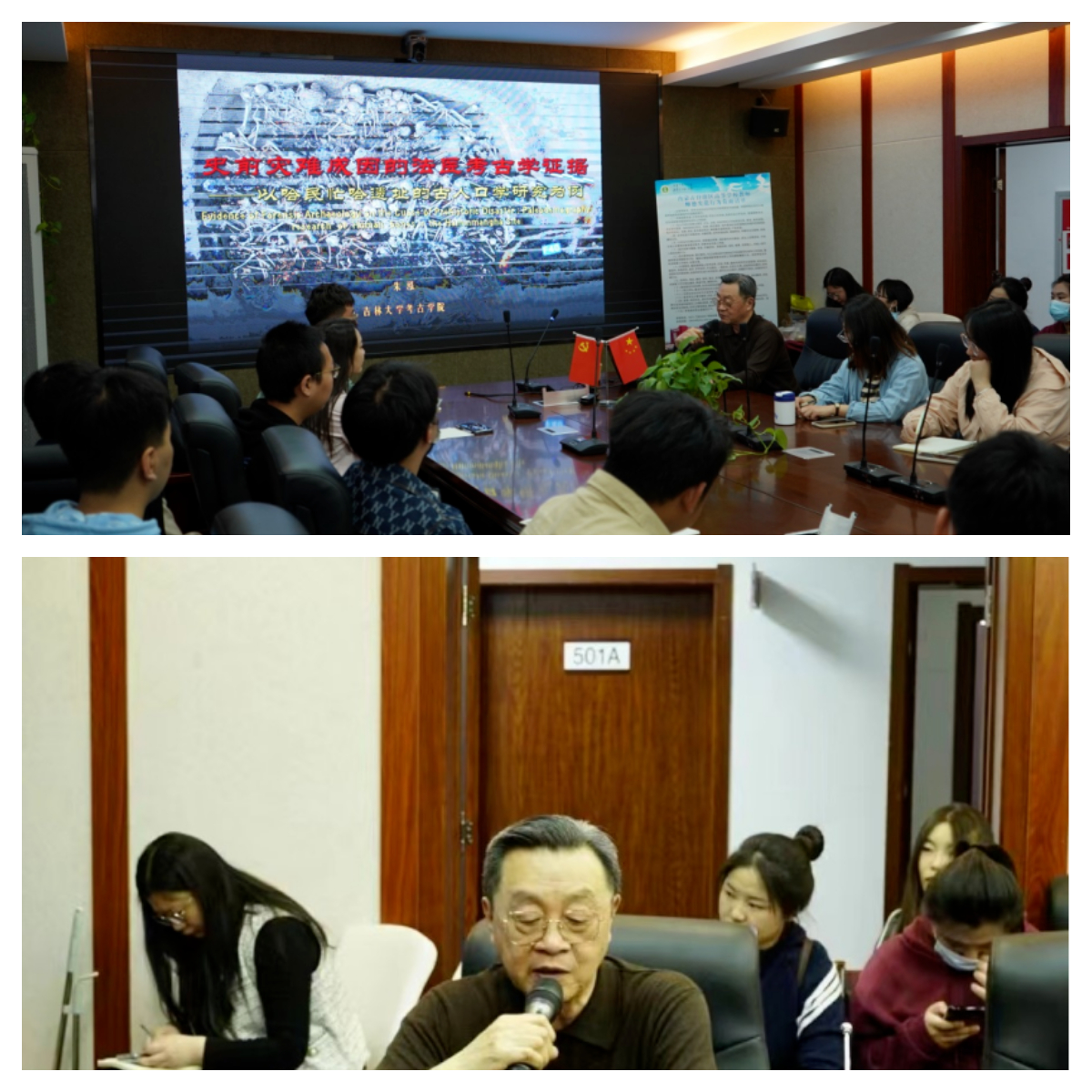 2023年4月16日上午,吉林大学考古学院朱泓教授应邀在内蒙古师范大学盛乐校区学院楼B502室给pg游戏电子模拟器的师生们做了一次精彩的讲座,题目为“史前灾难成因的法医考古学证据——以哈民忙哈遗址的古人口学研究为例”。讲座由考古文博系李鹏珍老师主持,大量本科生、研究生积极参与,共同探讨史前考古、分子考古、文物保护等方面内容,学术氛围浓郁。