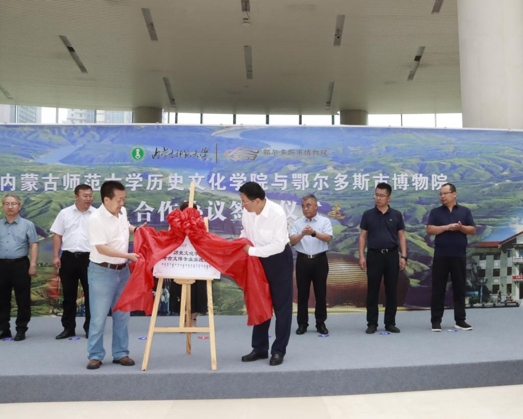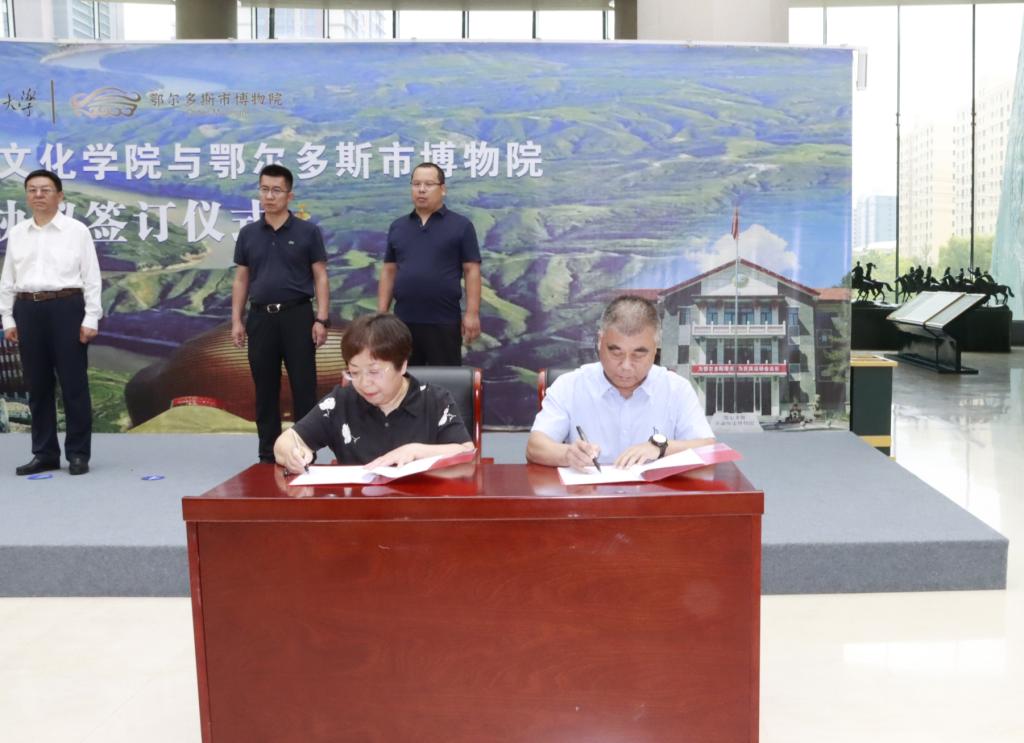 8月1日,pg游戏电子模拟器党委书记李艳洁,特聘教授、内蒙古博物院原院长陈永志,pg游戏电子模拟器副院长白林,考古文博系教师李鹏珍、袁刚、孟艳云,学院办公室主任永平等赴鄂尔多斯市与鄂尔多斯博物院签署了考古文博专业实践基地建设合作协议。