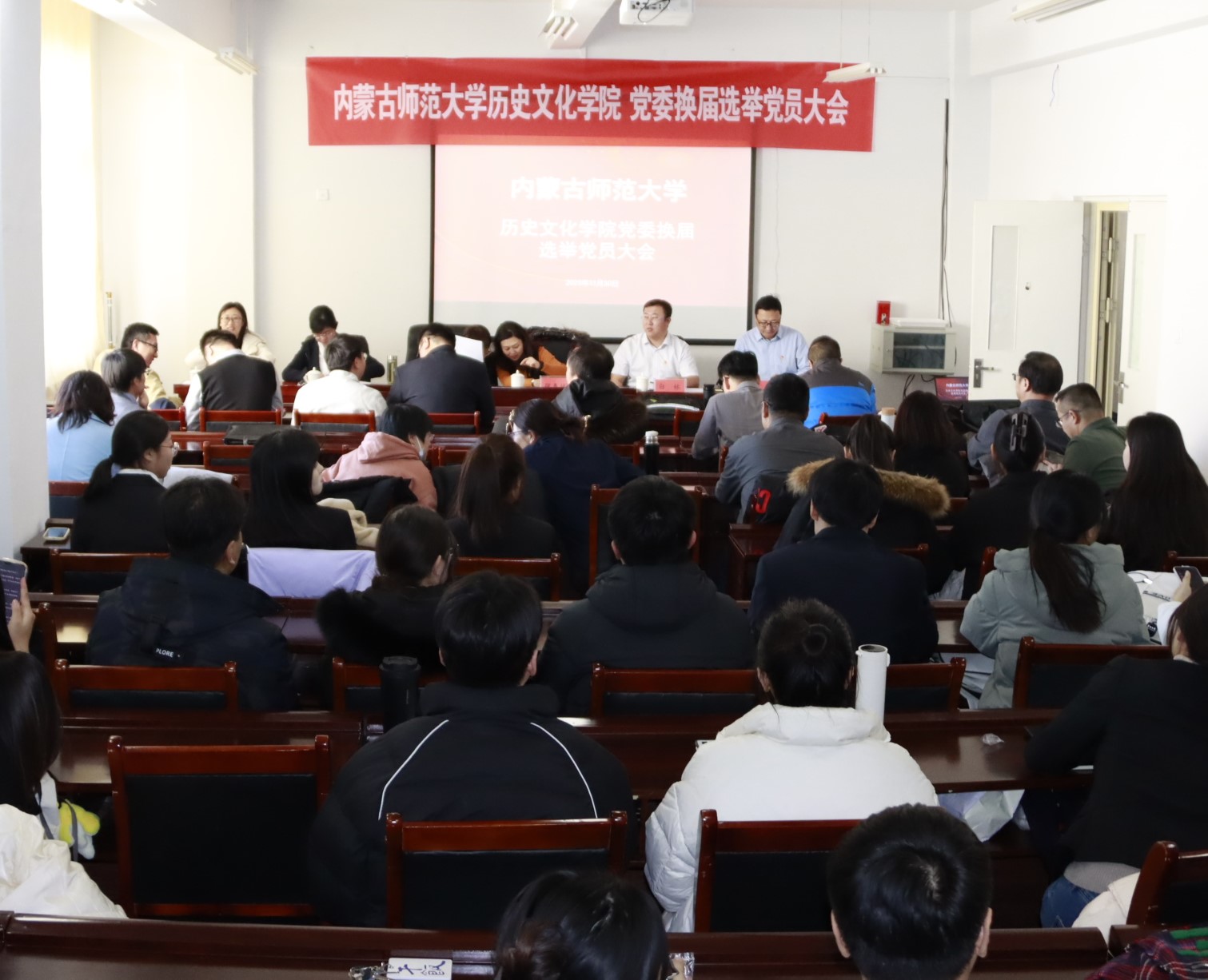 11月30日13时,内蒙古师范大学pg游戏电子模拟器党委换届选举党员大会在学院楼B座602室胜利召开。学校党委组织部干部教育科科长张春林,学院党委书记李艳洁,副书记、副院长檀晶,副院长白林,原党委成员牧仁、袁丽丽及pg游戏电子模拟器全体党员参加此次会议,会议由李艳洁主持。