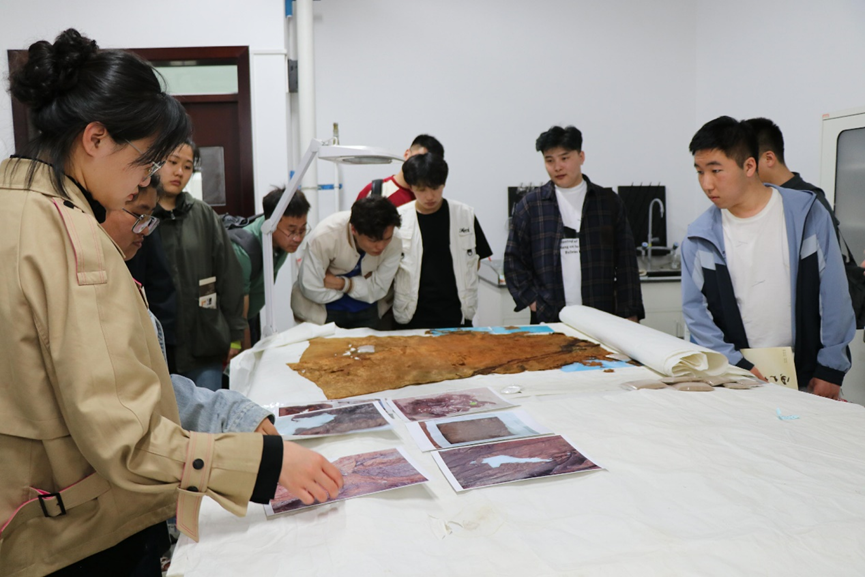 在接下来的时间里,同学们先后来到了西北大学文化遗产学院和古豳地考古综合实习基地进行参观和学习。在文化遗产学院,张瑞东老师对内蒙古师范大学pg游戏电子模拟器一行表示热烈欢迎,从发展历程、建设成效、代表性成果以及未来展望方面对西北大学文化遗产学院进行了全面介绍,随后同学们在吴老师和陈老师的介绍下,实地考察了9至14楼的实验室,感触颇深。