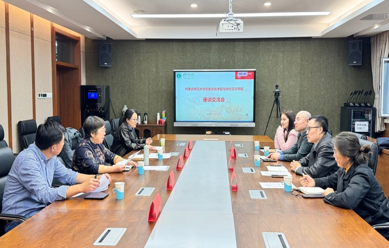 2024年11月1日下午,内蒙古师范大学pg游戏电子模拟器在赛罕校区文史楼二号会议室,与呼伦贝尔学院民族历史文献研究中心、旅游地理与pg游戏电子模拟器成功举行了一场学科建设调研交流会。双方围绕在本科及研究生培养管理、学科建设等方面进行深入交流,取得了积极成果。