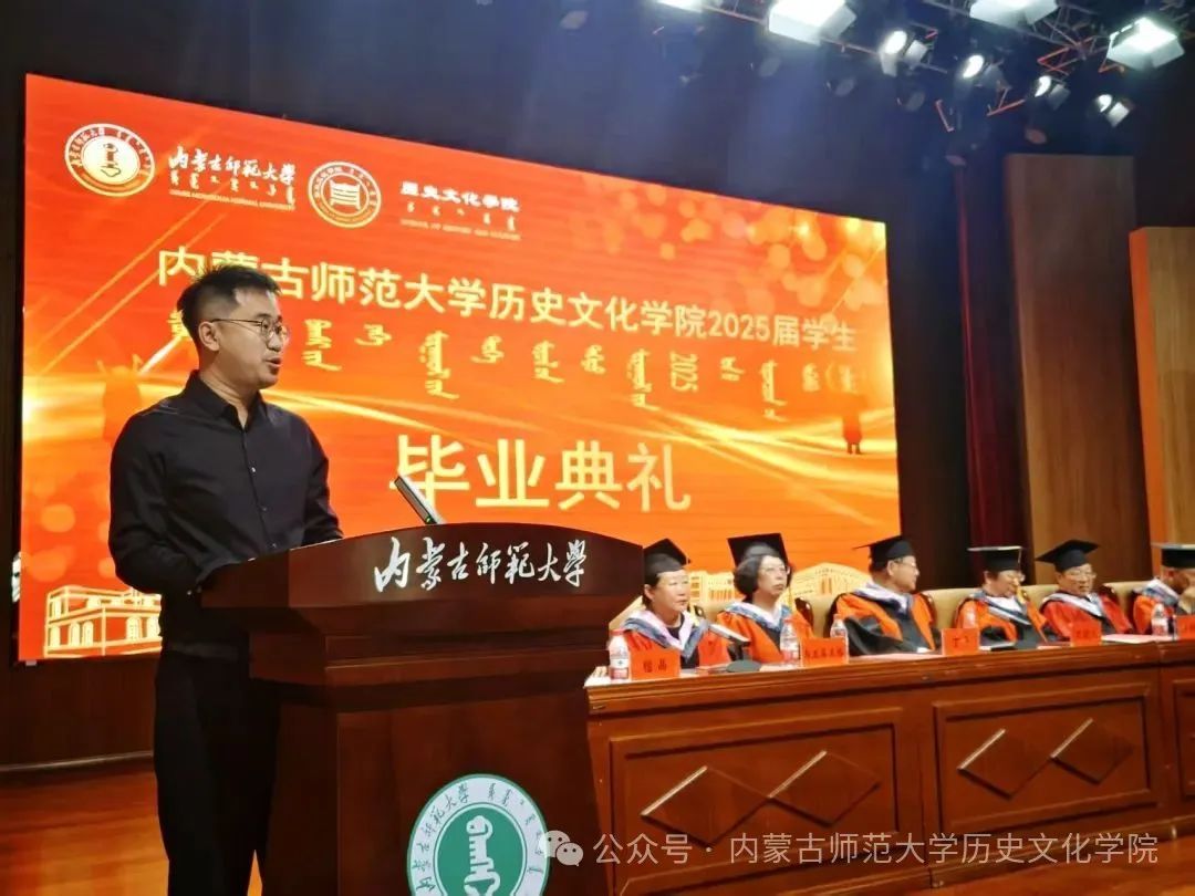 学院党委书记李艳洁对2025届毕业生圆满完成学业表示热烈祝贺。她寄语同学们:铭记使命,将个人理想融入国家发展大局,投身历史研究、文化传承或教育事业,为民族复兴贡献力量;保持求知与探索精神,坚持终身学习,在人工智能时代推动历史研究创新发展;在困境中坚守信念、拼搏奋进,以史为帆书写人生华章。