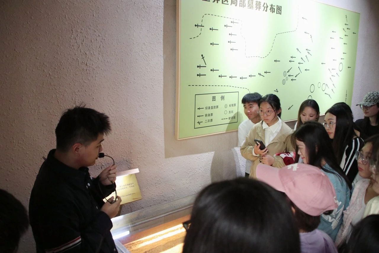 最后,半坡博物馆将同学们带回了距今约6000多年前的仰韶文化时代。作为新中国第一座史前聚落遗址博物馆,它展示了早期人类的生活方式和社会组织形式。通过观察古老的陶器、石器及生活遗迹,同学们仿佛穿越时空,直面那段充满探索与创造的历史,大家对母系社会的特征、经济形态及文化习俗也有了更直观的认识。