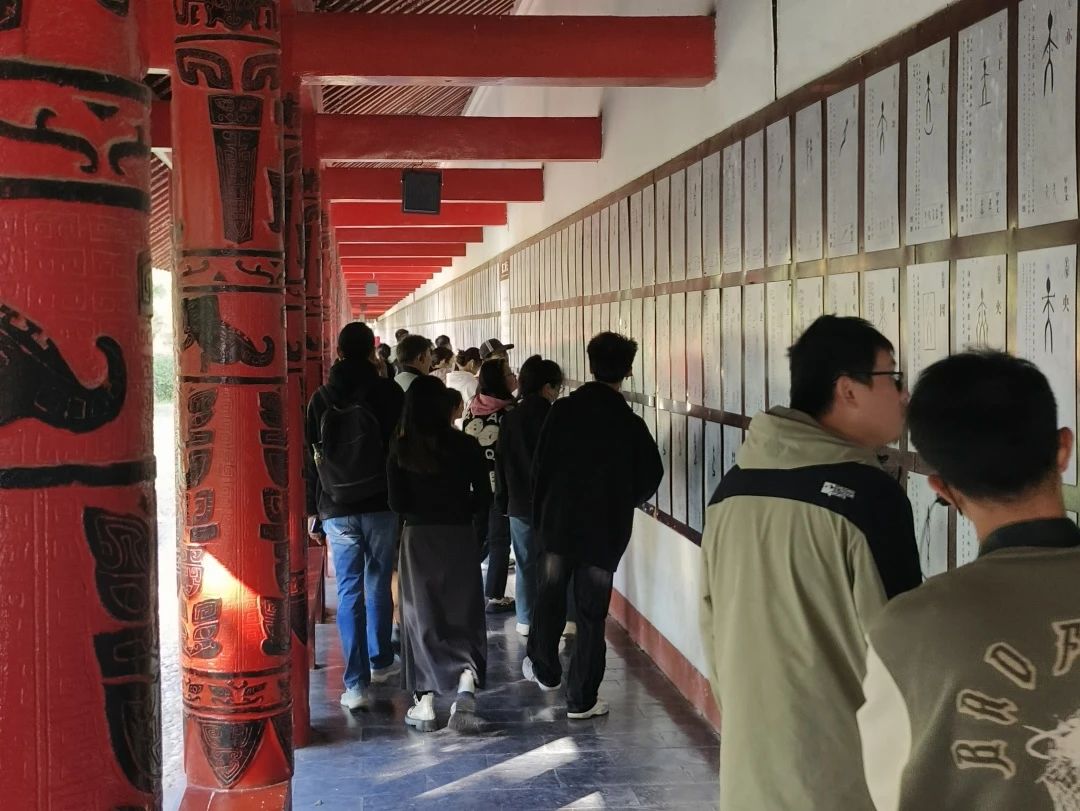 在甲骨文的研究中,殷墟提供了宝贵的一手资料。同学们在甲骨窑穴、甲骨碑林、甲骨碑廊观察了甲骨文的造字思路,对其书写方式与用途有了更进一步的认识。