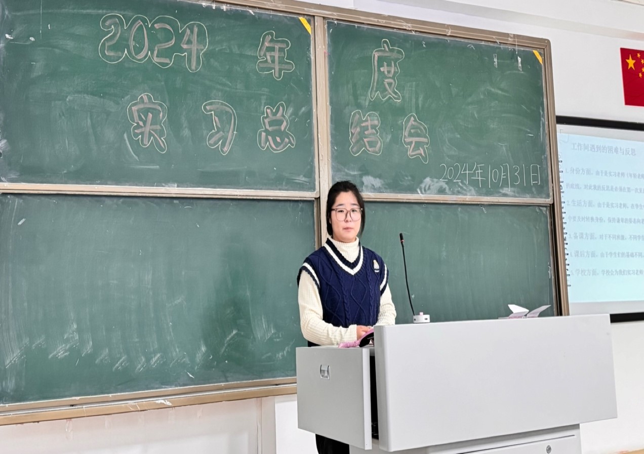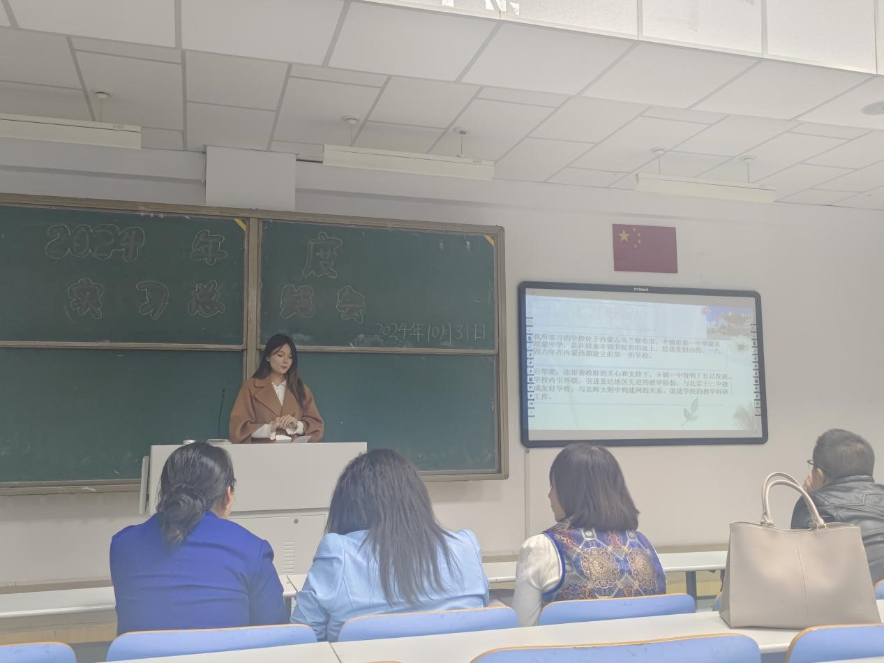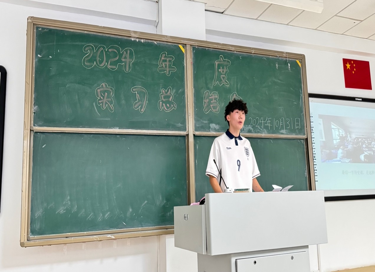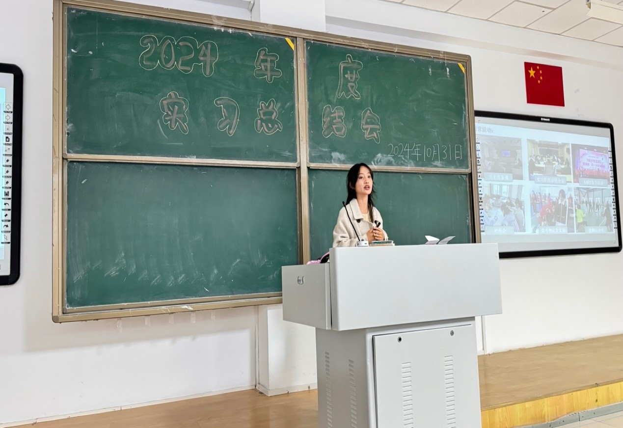 随后,王海凤老师主持了教育实习总结大会。她详细介绍了2021级历史学专业教育实习的基本情况,包括实习学校的分布、实习任务的完成情况等。接着,王老师依据实习期间各位同学的表现,以及实习学校指导老师和学院指导老师的评价,确定了优秀实习生名单,并主持了颁奖仪式。这一环节不仅表彰了表现突出的同学,也激励了全体学生在今后的学习和实践中更加努力。