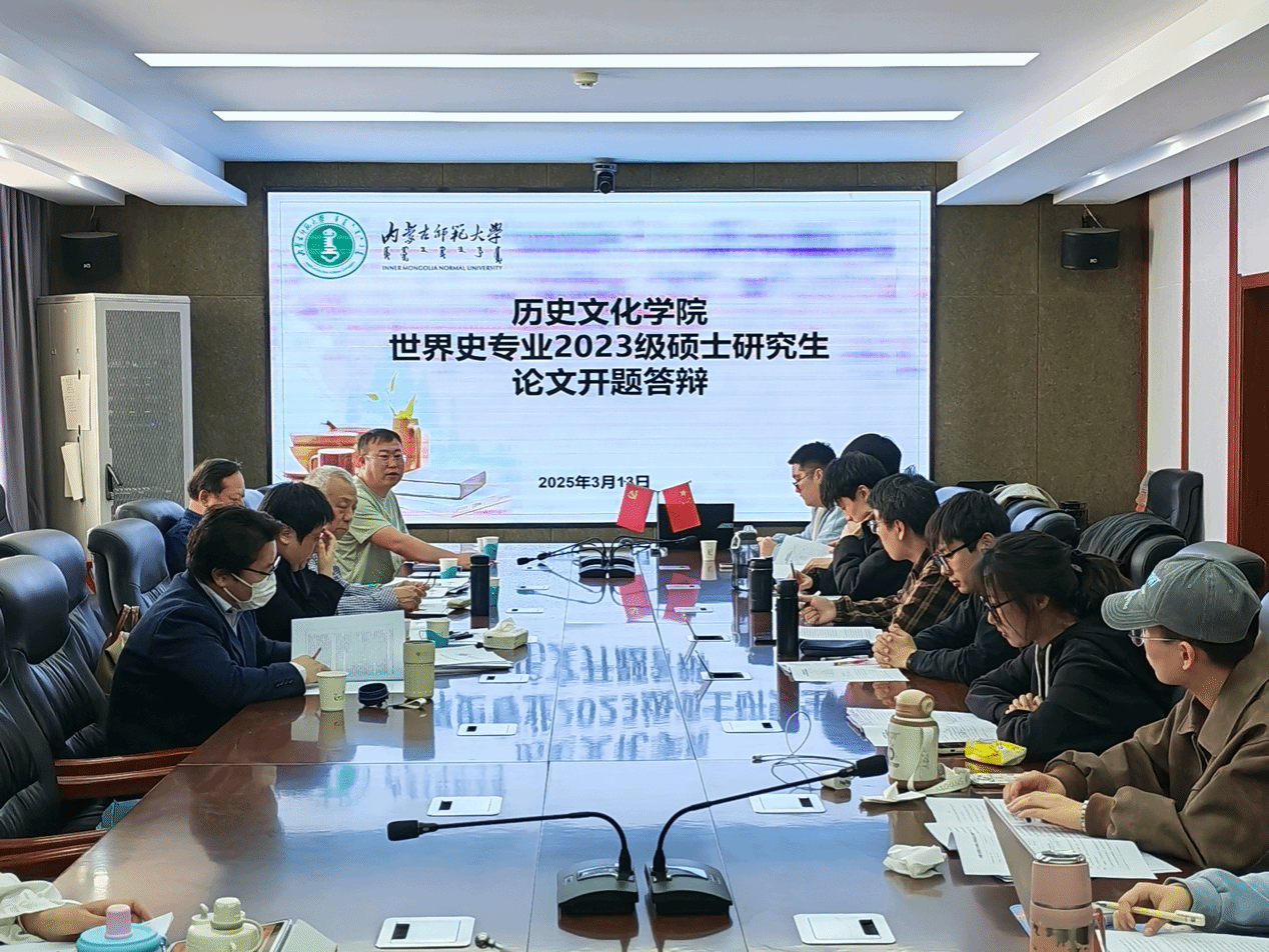 2025年3月13日,我院在盛乐校区学院楼B区502会议室,成功举办了2023级世界史专业硕士研究生毕业论文开题答辩会。此次开题答辩会是研究生培养过程中的重要环节,旨在明确研究生毕业论文的研究方向,规范研究路径,为后续毕业论文的撰写奠定坚实基础,引导学生扎实开展学术研究,进一步提升学院研究生的学术水平。