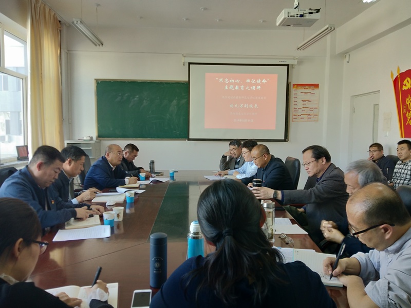 2019年10月30日下午,pg游戏主题教育领导小组成员、副校长刘九万深入pg游戏电子模拟器调研指导工作,并与学院领导班子、师生代表进行了座谈,教务处、后勤管理处、后勤服务集团等部门负责同志陪同调研。