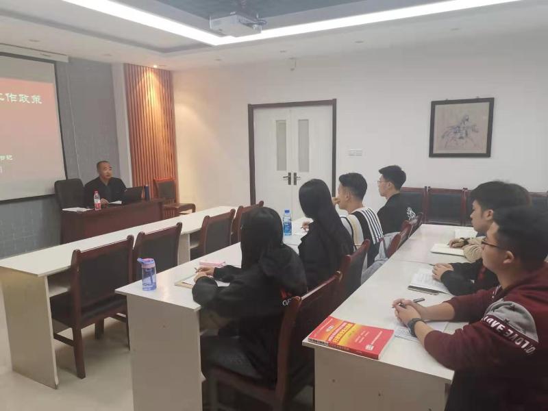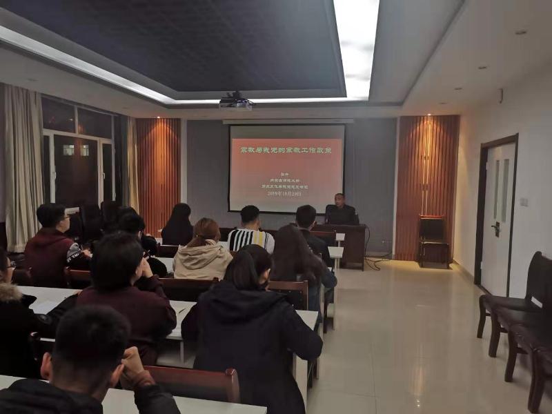 2019年10月29日晚,pg游戏电子模拟器举行宗教工作专题培训会,pg游戏电子模拟器党总支书记张升老师为学院学生干部讲解了党的宗教政策,培训会由学院党总支副书记宋磊主持。