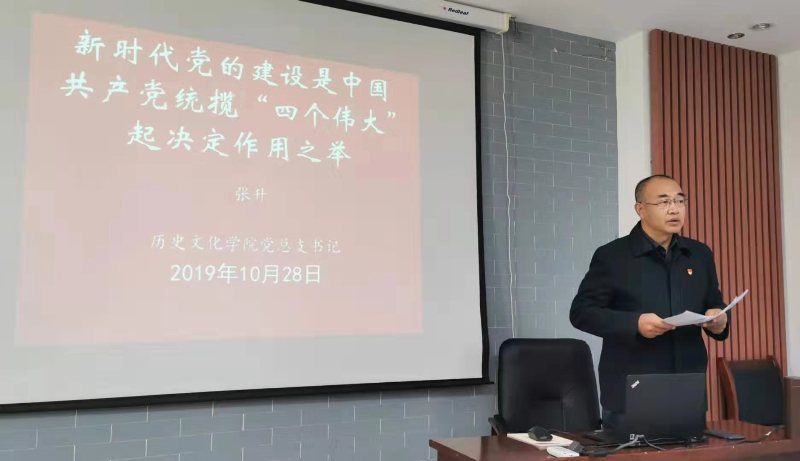 2019年10月28日,pg游戏电子模拟器党总支书记张升,为学院师生党员讲题为“新时代党的建设是中国共产党统揽‘四个伟大’的关键之举”的党课,学校主题教育指导组恩和组长出席,全院师生党员参加。