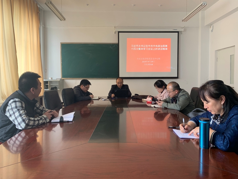 2019年4月29日,pg游戏电子模拟器举行中心组学习,学习习近平总书记在中央政治局第十四次集体学习上的讲话。会议由党总支书记张升主持,党总支书记副院长宋磊、文博系主任黄河、团总支书记钱艳艳、教务科研办公室副主任乌力吉同拉嘎、教师代表哈斯格日勒等老师参加学习。