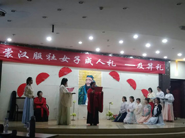 2016年3月26日晚7:30分,内蒙古师范大学华裳汉服社在图书馆一楼报告厅成功举办了及笄礼,及笄礼是我国汉民族传统的女子成人礼仪, 与华夏文明同根同源,自汉代开始至明及为盛行。古时一般为十五岁或嫁前行礼,现今行礼时间一般为十八岁或二十岁。