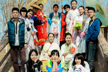 丙申年二月十二,适逢天气晴朗,阳光明媚,华裳汉服社部分社员相邀室外共度花朝,盛乐之景虽非百花争艳,倒也带有北国初春独特的风韵。姑娘们手拿花朵,头戴明媚,笑靥如花,此等美景定当是以华服相配!
