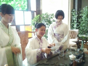 三、此次汉服出行活动着重在于师大汉服同袍之间相互认识,互相了解,所以整个活动气氛都较为轻松活跃,同袍之间进行了亲密交流,其间同袍们与王洁老师也有亲密互动。师生之间其乐融融。同时,大家还与茶吧服务员进行了亲切交流并且向其学习茶道。