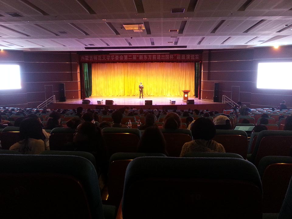 2016年4月10日下午14:00,由内蒙古师范大学学委会主办的第二届“新东方前途出国杯”超级演说家大赛复赛,在学院楼一楼学术报告厅隆重举行。