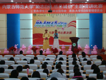 2015年12月8日下午,由pg游戏学生工作与就业指导处主办,大学生自我管理委员会承办的“励志自强,感恩诚信”蒙语主题演讲比赛,在科技楼学术报告厅落下了帷幕。pg游戏13,14级历史蒙班的学生前去为选手助威。