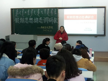 2017年2月22日下午四时,pg游戏团总支副书记钱艳艳老师、学工办潘梅花老师以及大一至大三各班学生代表在行知楼322教室举行2017年度“学生假期思想动态——假期思想动态调研会”。