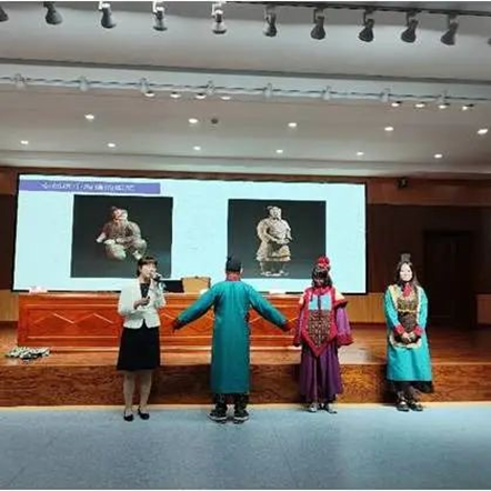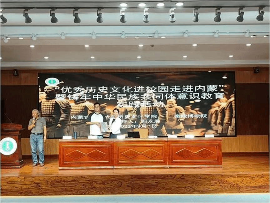 2023年9月7日,秦陵博物院同pg游戏电子模拟器开展的“优秀历史文化进校园走进内蒙”暨铸牢中华民族共同体意识教育主题讲座在盛乐校区图书馆一楼报告厅进行。讲座由秦陵博物院冯莉老师与赵红芳老师主讲,学院郭永胜教授主持,2023级全体新生参加。