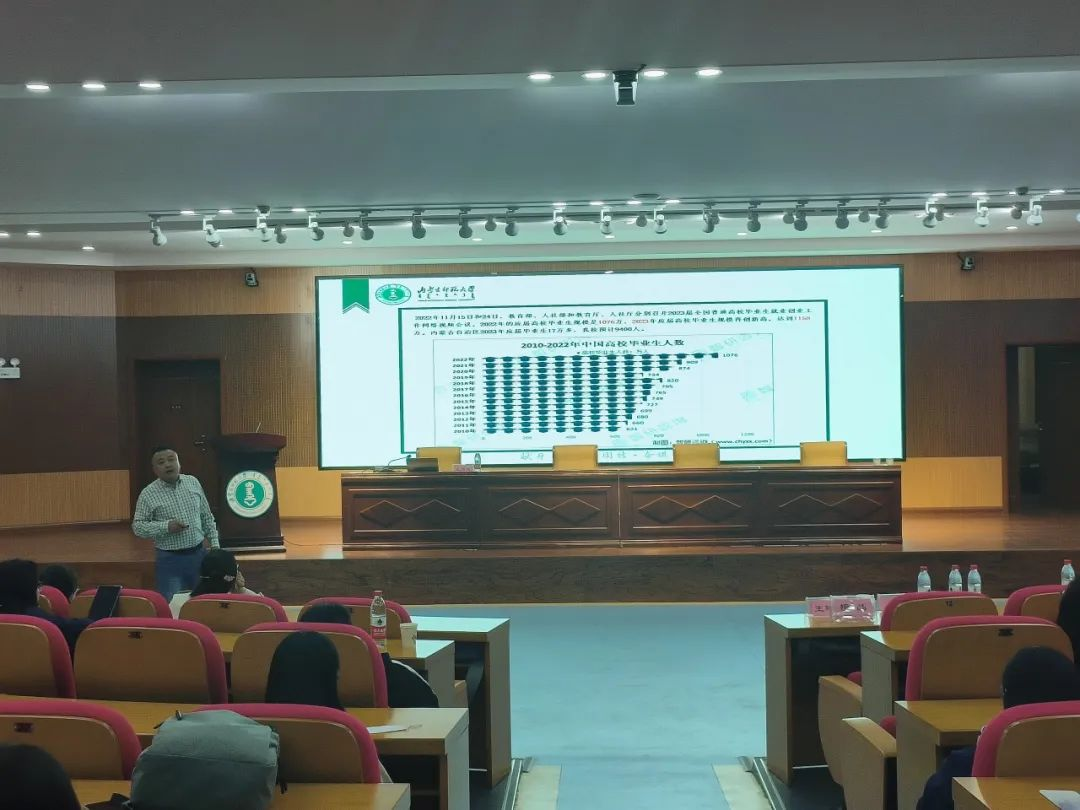 会议最后,学校招生就业处王贺成老师为2024届毕业生开展专题讲座。