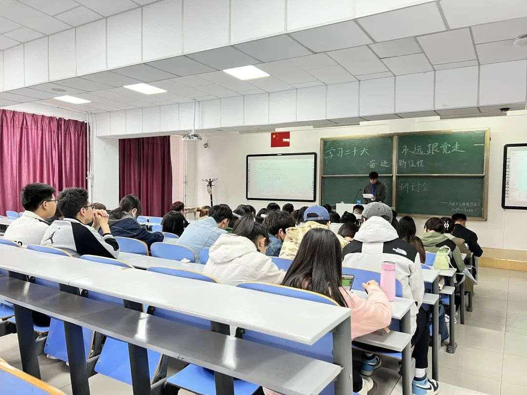 研讨会上,各年级各专业的学生党员们依次进行了二十大精神心得交流、讲述身边故事、谈谈家乡变化的主题讨论,各位同学结合时代背景,就青年一代如何践行二十大精神提出了以下三个方面:在思想政治上,应该铸牢政治品质;在学习上,应该锤炼才干本领;在生活中,应该争做艰苦奋斗、无私奉献的模范青年。