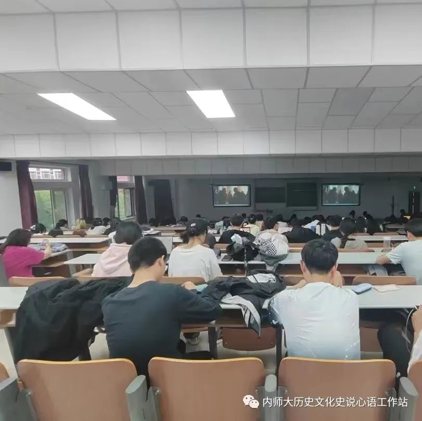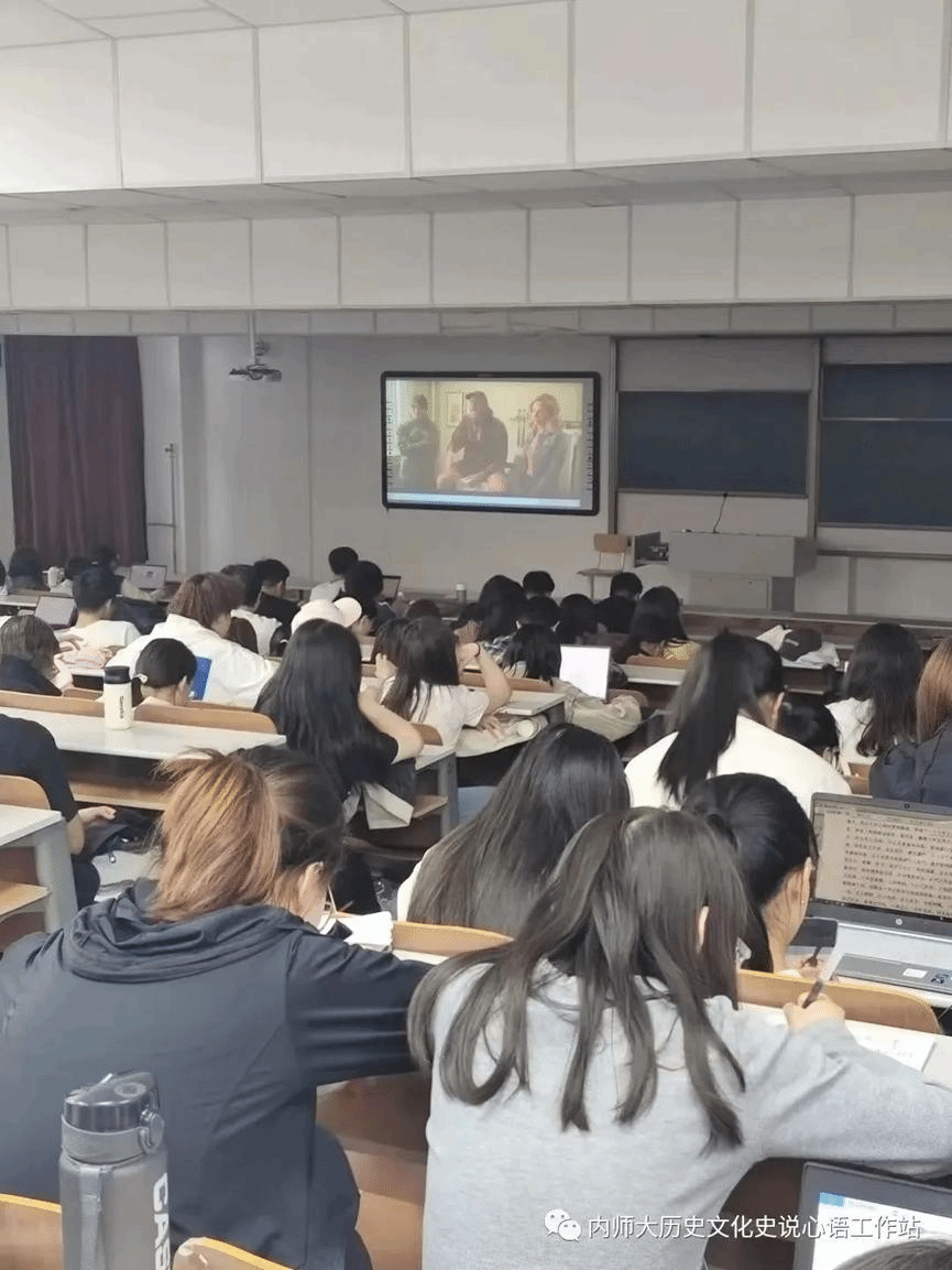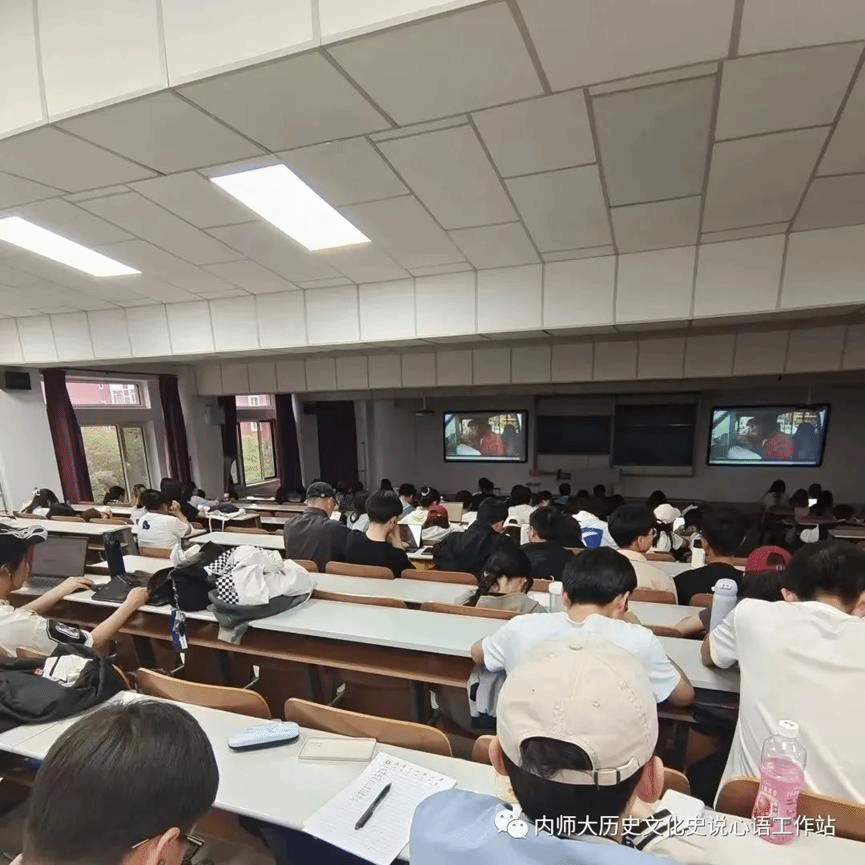 在2023年5月23日,内蒙古师范大学盛乐校区里,pg游戏电子模拟器2021级的同学们观看电影《健听女孩》。