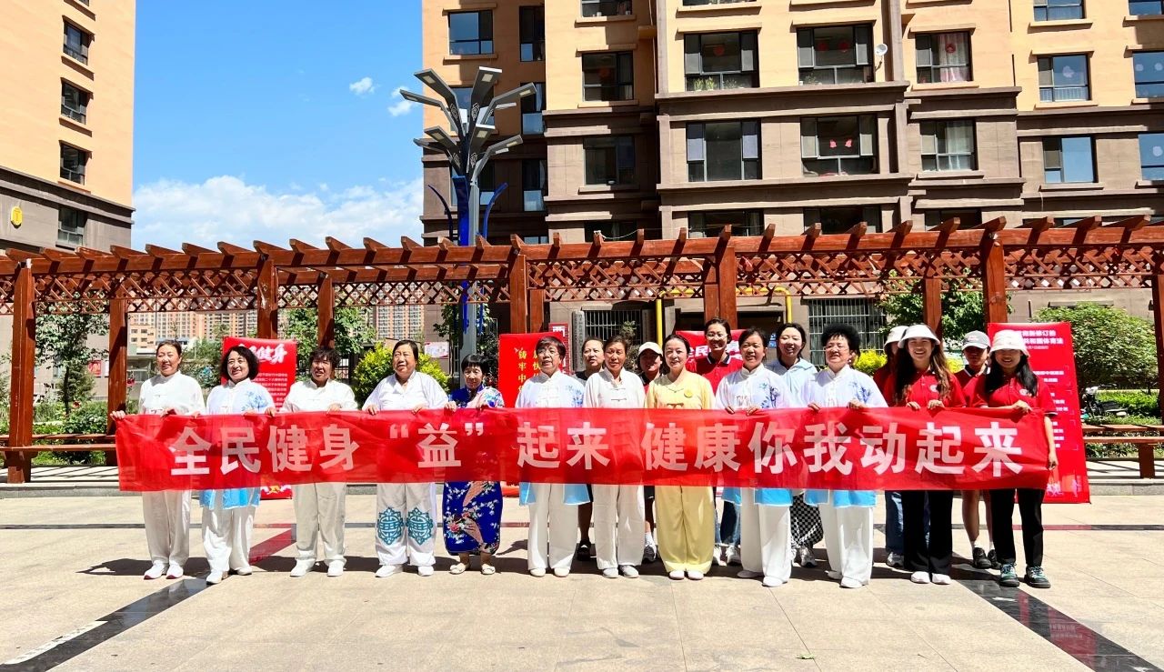 同学们在健身老师的带领下和社区内健身爱好者一起进行了八段锦健身活动。