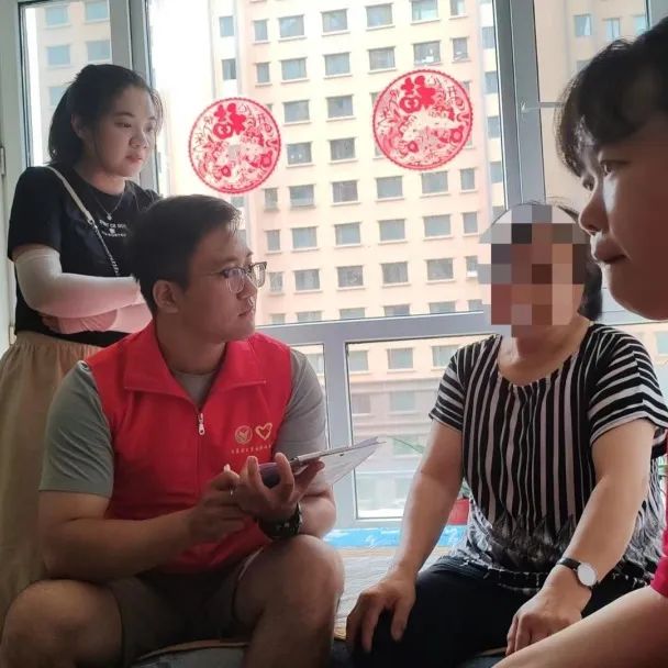 2023年7月14日上午,内蒙古师范大学pg游戏电子模拟器党史学习教育团成员来到西霞园社区进行入户走访。