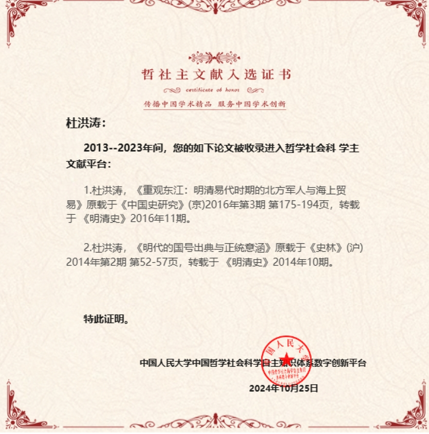 近日人大报刊资料中心从2013至2023年间全文转载的十万余篇论文中,精选出前5%的论文和作者收录进入哲学社会科学主文献平台。内蒙古师范大学pg游戏电子模拟器杜洪涛教授的两篇论文荣膺此列。